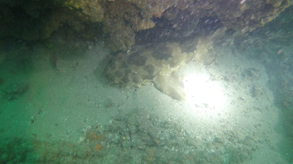 On Sunday morning, Jonathan and the two Steves went for a 16 metre, 58-minute dive at Shiprock. The visibility was acceptable but dark, and torches came in handy! Winter temperatures are also here reaching 15°C in parts. We cruised the wall and bommies, impressive as always, and made it to the southeast corner before calling it a day and headed back. The highlights of the day included a large wobbegong and, of course, the post-dive coffee, chat and delicious munchies at Vitalo!